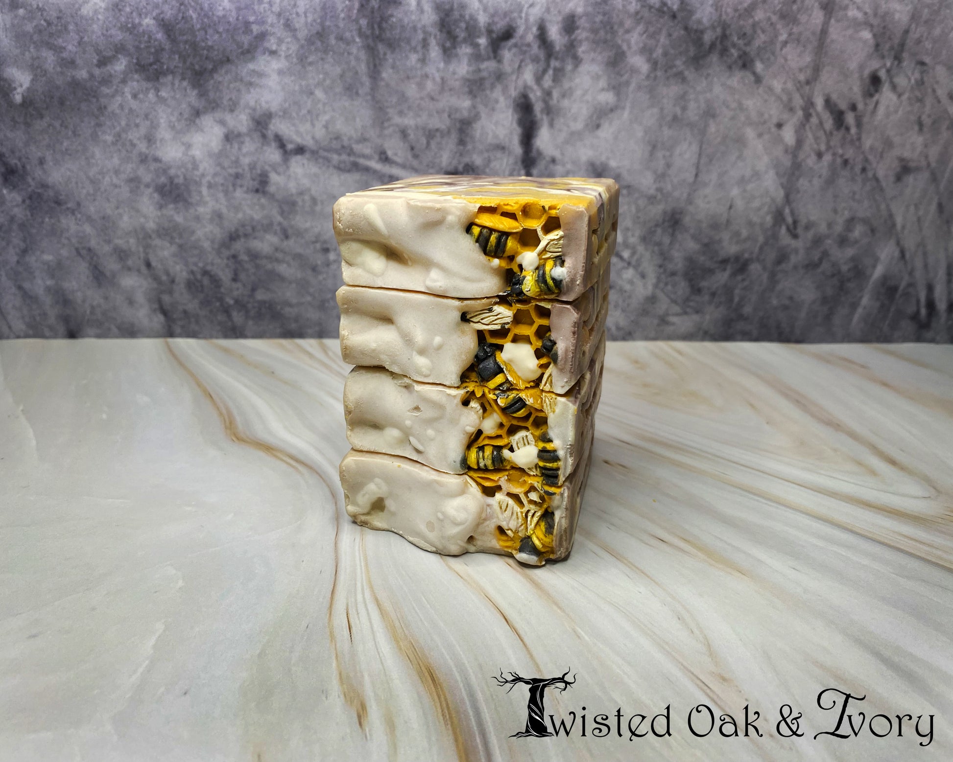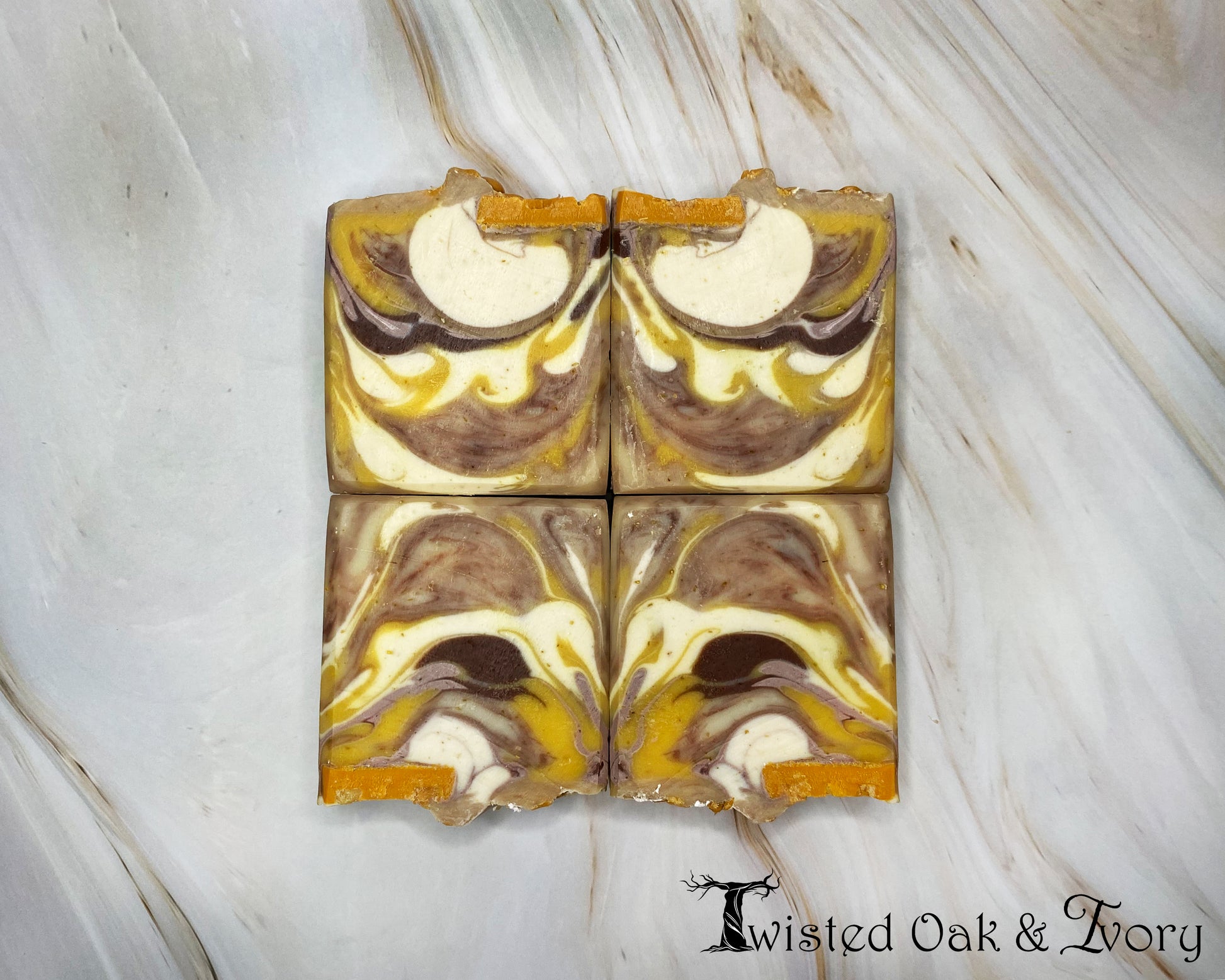 Every small soap batch is created at the Twisted Oak & Ivory studio in New Mexico. These artisanal soaps are meticulously handcrafted and hand-cut, leading to variations in design, color, and size from bar to bar.