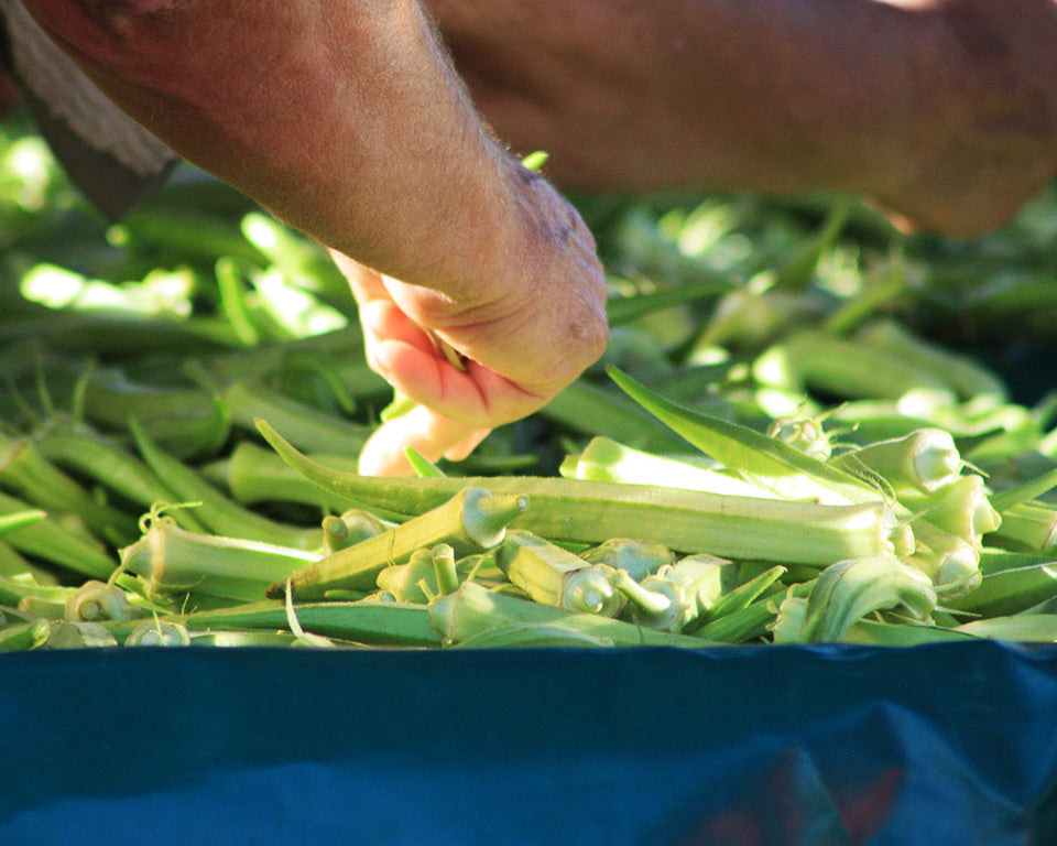 Okra is a warm-weather plant, soaking up full sunshine and thriving in ordinary, well-drained garden soil. Start seeds indoors (4 to 6 weeks before the soil warms) everywhere but in the hottest climates, soaking the seeds for 24 hours before planting them. Transplant when night temperatures are consistently above 50 degrees F, spacing the plants 10 to 12 inches apart. Fertilize the soil before planting and again when the plants begin to flower. If you want to pick the fruit for eating, they are ready to harvest when just 3 inches long, or they may be left to mature to their full size if you want to save seed.