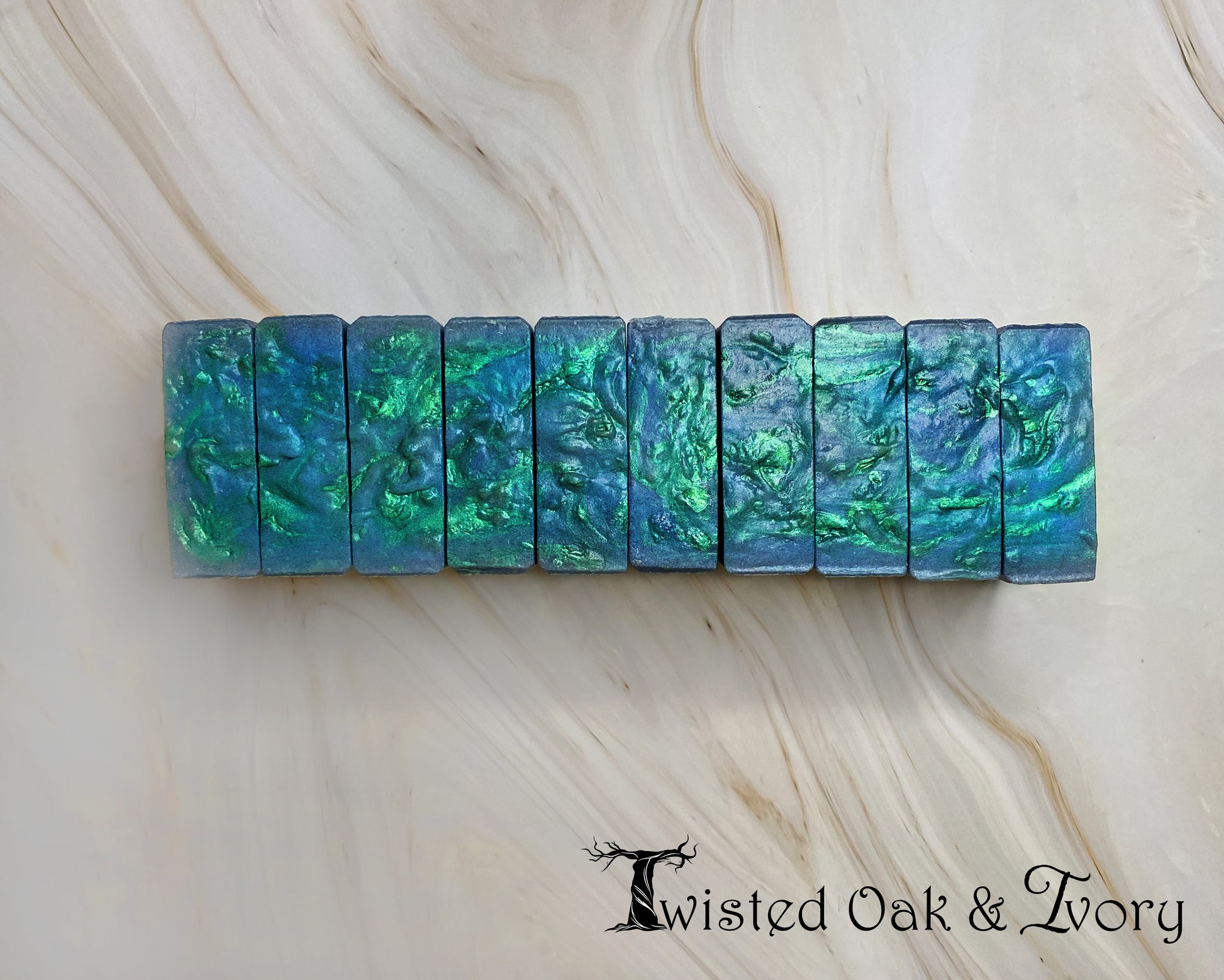 Every small soap batch is created at the Twisted Oak & Ivory studio in New Mexico. These artisanal soaps are meticulously handcrafted and hand-cut, leading to variations in design, color, and size from bar to bar.