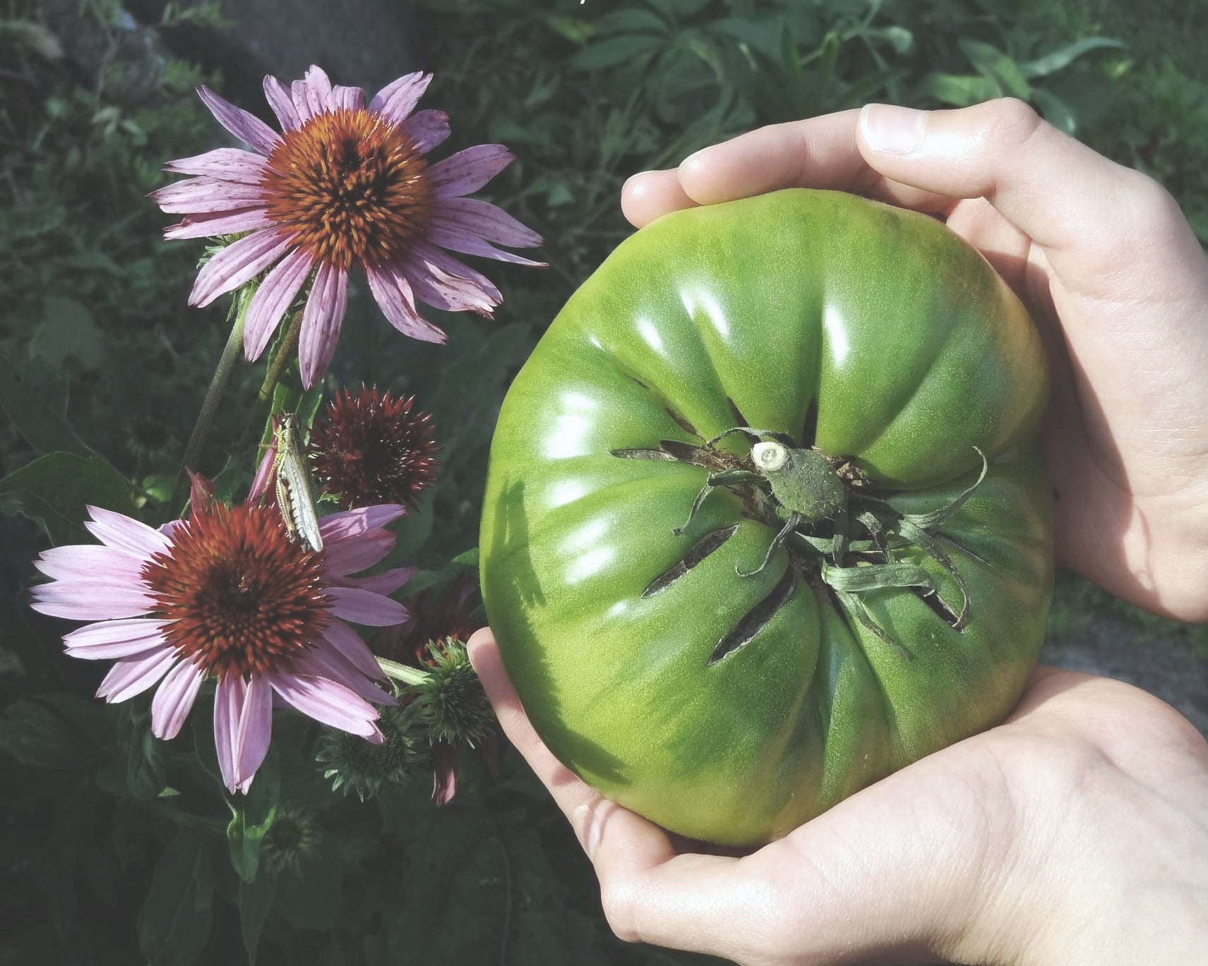 This is a truly unique heirloom tomato that is green when ripe, although it will develop a blush color as it softens further. The variety came from Germany but was cultivated in the U.S. by Ruby Arnold in Tennessee. Her relatives always called it Aunt Ruby’s tomato, and the name stuck. Aunt Ruby’s German Green tomatoes are large, growing up to a pound (453 grams) or even more. The flavor is sweet with a slight hint of spiciness. They are perfect for slicing to whip up a batch of green fried tomatoes! They also work great for fresh eating.