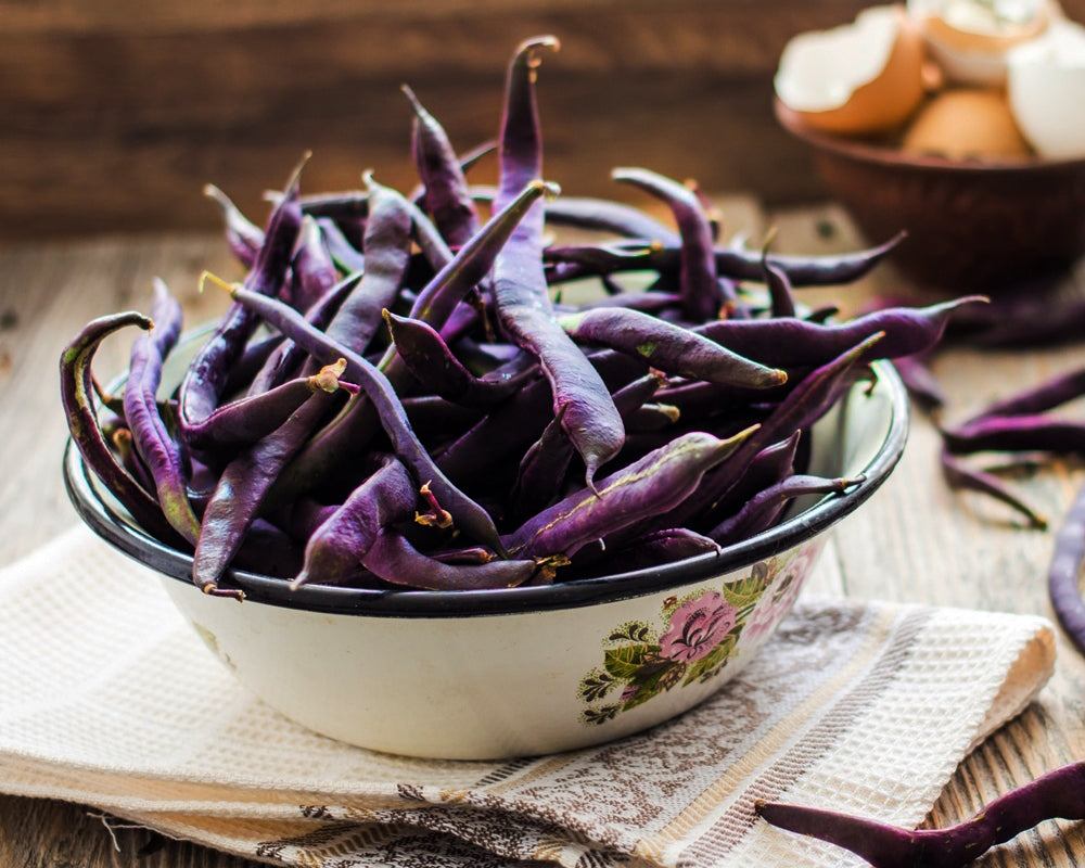 The Royal Burgundy bean has a dark purple outside with a bright green inside and is absolutely delicious! The 24-inch-tall plants grow upright and hold their pencil-shaped pods off the ground. Royal Burgundy performs exceptionally well under cool conditions. Buckskin color seeds.