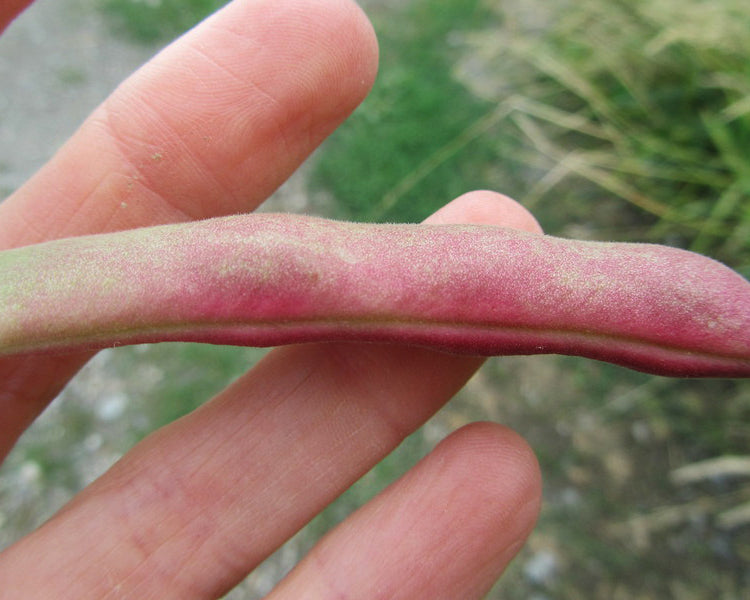 Also known as Peanut Bean, the flavor differs greatly from the standard "green bean" flavor. Some describe it as tasting and looking like small peanuts. This beautiful bean can be eaten fresh as a snap bean, canned, or dried when mature. Pods start off green, then go to pink, and finally yellow or tan when completely dried.