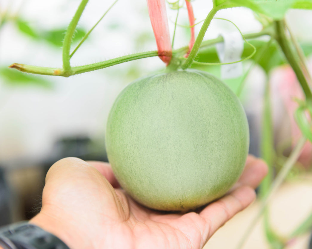 The Staska's Sweet is a beautiful and sweet oriental melon that grows no bigger than a softball! With a harvest weight of 10-12 ounces, the gray-green skin ripens yellow-green with a soft green flesh that is highly aromatic. This melon is fun to grow and does well on a trellis. After harvest, Staska's Sweet can be stored for a few weeks. This variety has grown in the East for centuries and is now appearing in American markets. You can eat both this tasty melon’s flesh and skin! If the melons are kept out of the sunlight, they will stay a stark white!