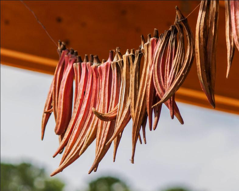 Okra is a warm-weather plant, soaking up full sunshine and thriving in ordinary, well-drained garden soil. Start seeds indoors (4 to 6 weeks before the soil warms) everywhere but in the hottest climates, soaking the seeds for 24 hours before planting them. Transplant when night temperatures are consistently above 50 degrees F, spacing the plants 10 to 12 inches apart. Fertilize the soil before planting and again when the plants begin to flower. If you want to pick the fruit for eating, they are ready to harvest when just 3 inches long, or they may be left to mature to their full size if you want to save seed.