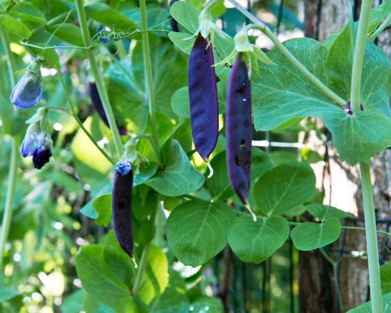 This is our deepest purple snow pea! These richly colored peas are mostly deep purple with the occasional green pod. They are best harvested while young. They bend and curl, giving each pod a unique look.