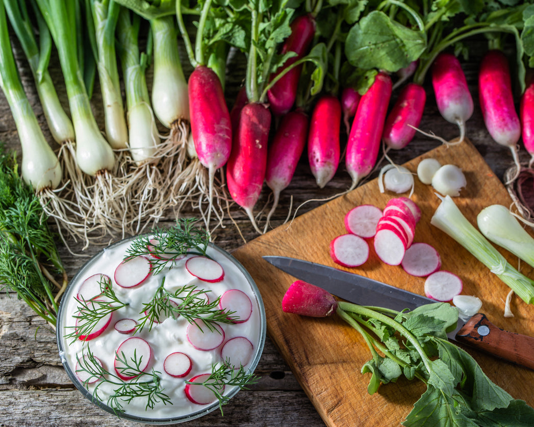 Direct sow radish seeds into well-drained, fertile soil about 1/4 inch deep and 2-3 inches apart in rows spaced 6 inches apart. Radishes do not transplant well, so it is best to plant them where they will grow.