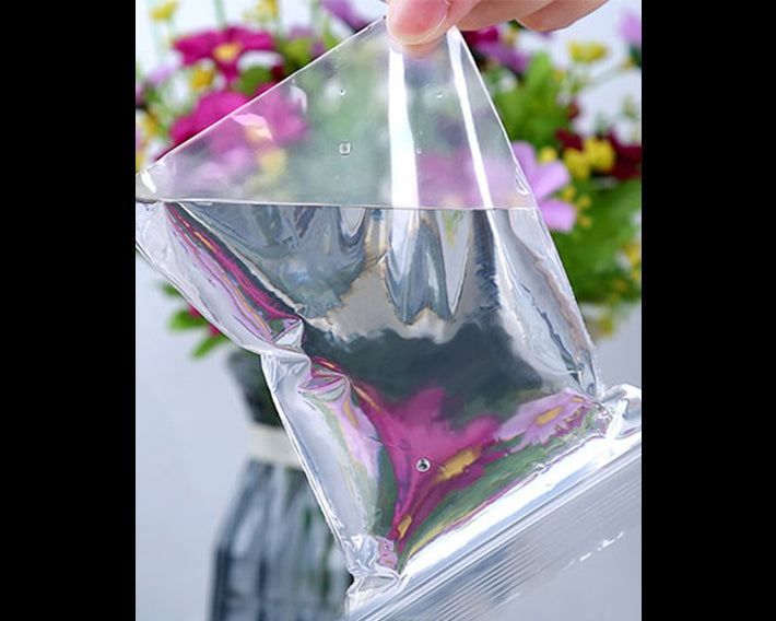 A 10-pack of super thick poly bags. These are the same bags that we use to store our seeds. 2mil food grade poly measuring 4 3/4" x 3"