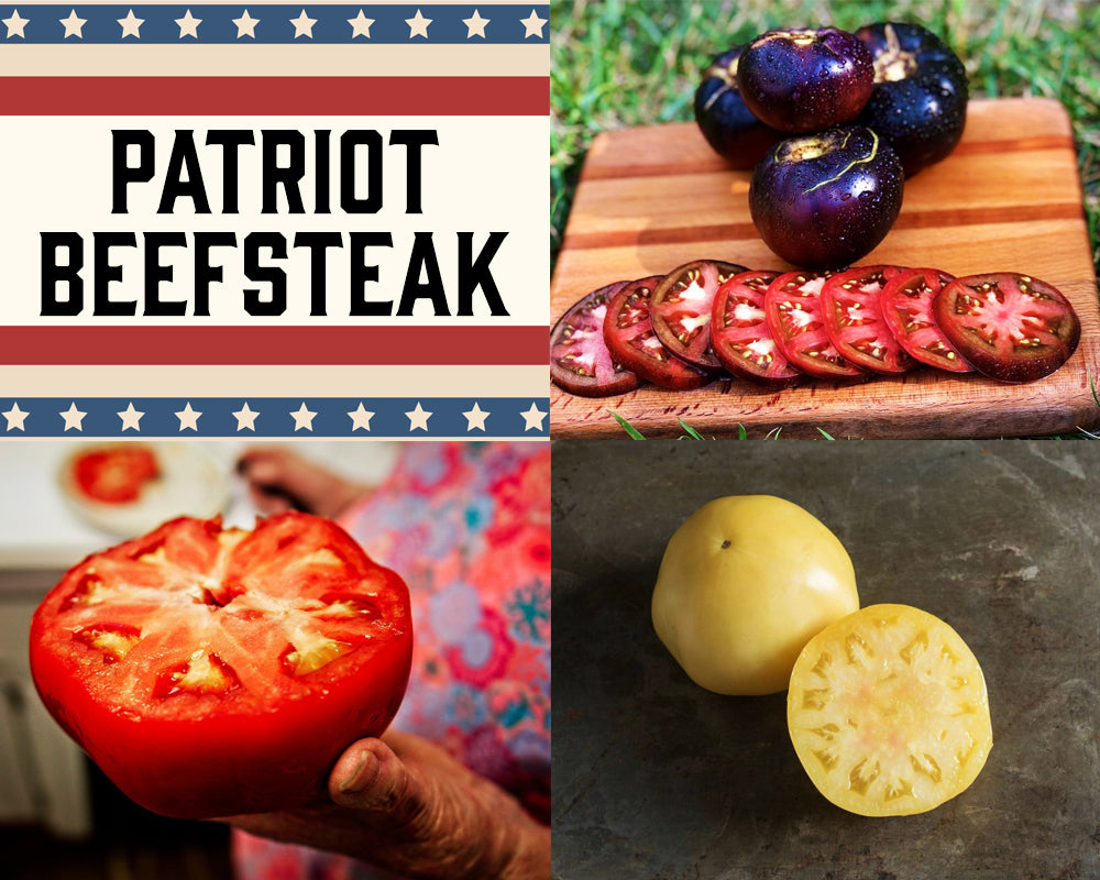 An equal parts mix of our most patriotic beefsteak tomatoes! Blue Beauty, Great White, and Classic Beefsteak