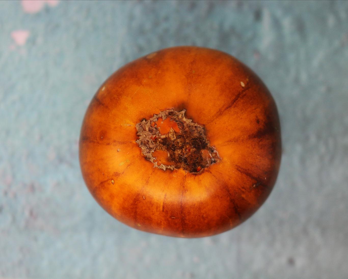Beautifully colored outside (dark violet, yellow, and orange to even red when fully ripe) and inside (red and yellow marbling). Very juicy and tasty flesh, sweet with fruity notes. Blue Jollies was developed from an accidental cross found by José Antoine of Liège, Belgium. Very attractive, bi-colored fruit with dark, antho splash on the sun-exposed part of the fruit. Medium size, oblate tomatoes are perfect for slicing and putting on sandwiches.